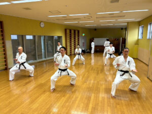 初日、2日目は基本と型の稽古を行い、沖縄の館長先生から、当会が継承する泊手と剛柔流の特徴を教わり、それぞれの特徴を崩すことなく稽古し、両系統の技術を活かす空手が出来る様にとご指導いただきました。